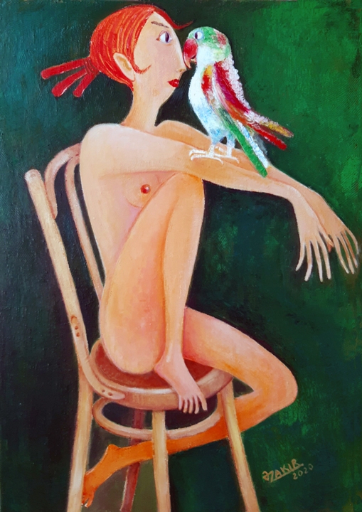 Girl and parrot.2020year 70x50cmOriginal Painting Oil on Canvas 8000$