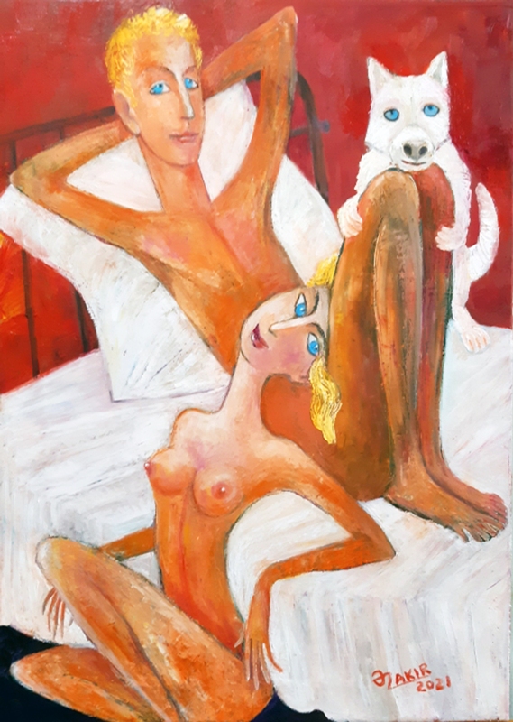 Husky and his friends 2021year 70x50cmOriginal Painting Oil on Canvas 12000$